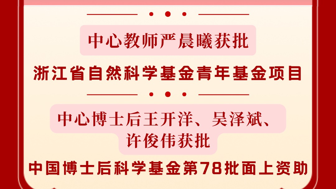 中心博士后许俊伟获批杭州市自然科学基金青年项目