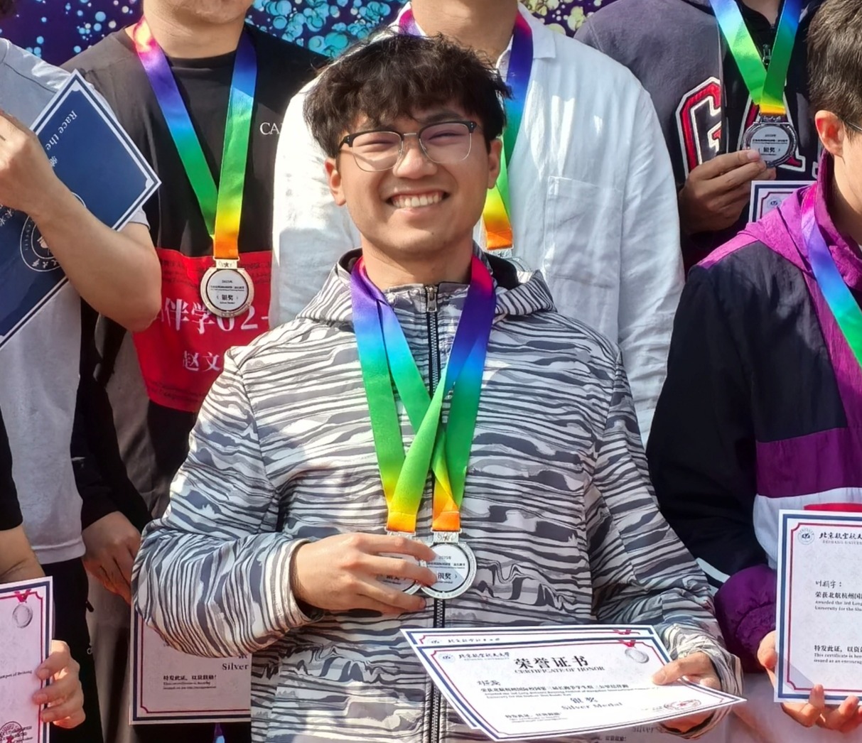 这次比赛能获得银奖真是非常的惊喜,赛前与结伴跑的小伙伴约定争取能获得铜奖就是成功。然而我们似乎低估了我们的团结与决心,赛道上,我们相互鼓劲,前半程他带速、后半程我补劲,把前面一队的人当成我们的目标,一个接一个的超越他们;冲线时,我们手拉着手共同迈过终点,合作的喜悦溢于言表。这像极了我们做医工交叉项目,有时候单靠一个方向的知识攻不破难题,得和队友跨领域配合、互相补位才能推进,带来“1+1>2”的效果。